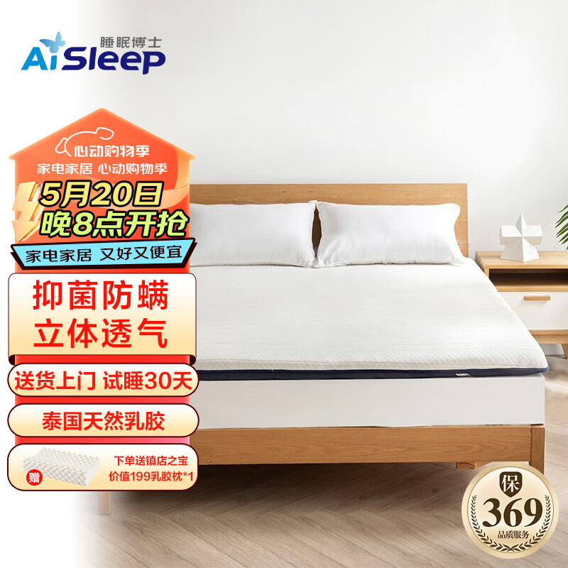 睡眠博士(AiSleep)床垫泰国天然乳胶床垫记忆棉榻榻米床垫床褥180*200*8cm价格:377.00元!