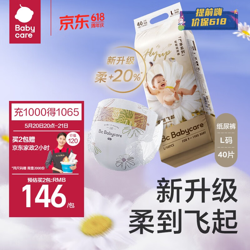 babycare纸尿裤飞享花苞裤bbc婴儿尿不湿超薄透气L40片(9-14kg)价格:209.00元!