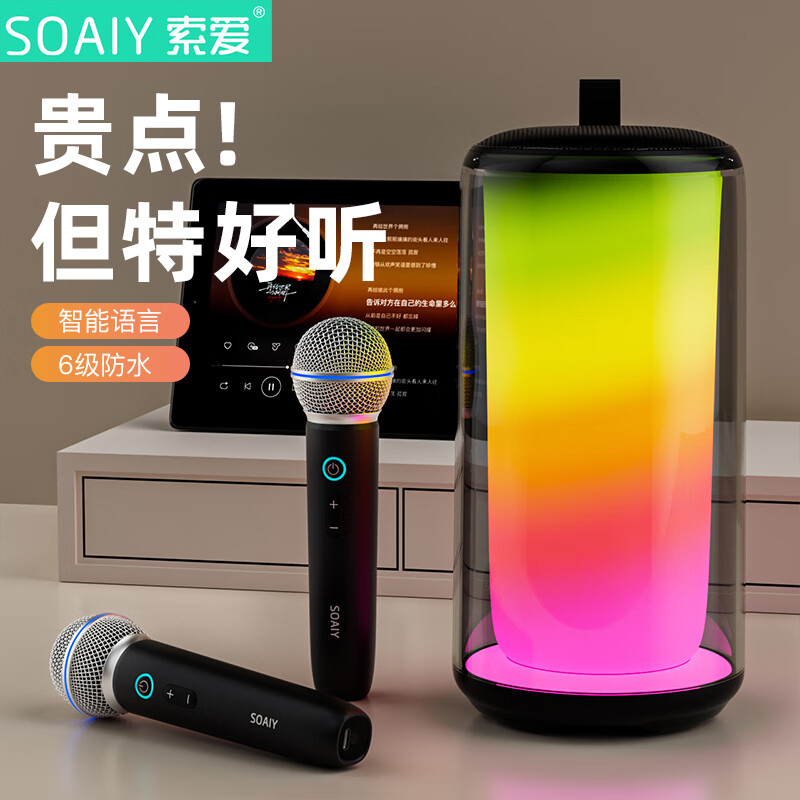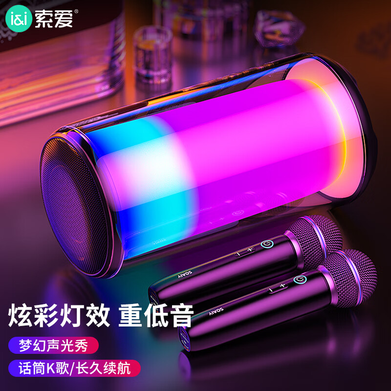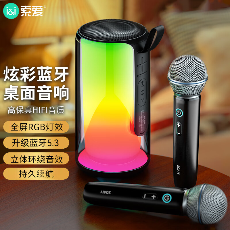 索爱(soaiy)K69蓝牙音箱麦克风套装直播电视家庭ktv儿童手机无线K歌琉璃音响户外小度AI助手点歌送男友礼物黑价格:308.00元!
