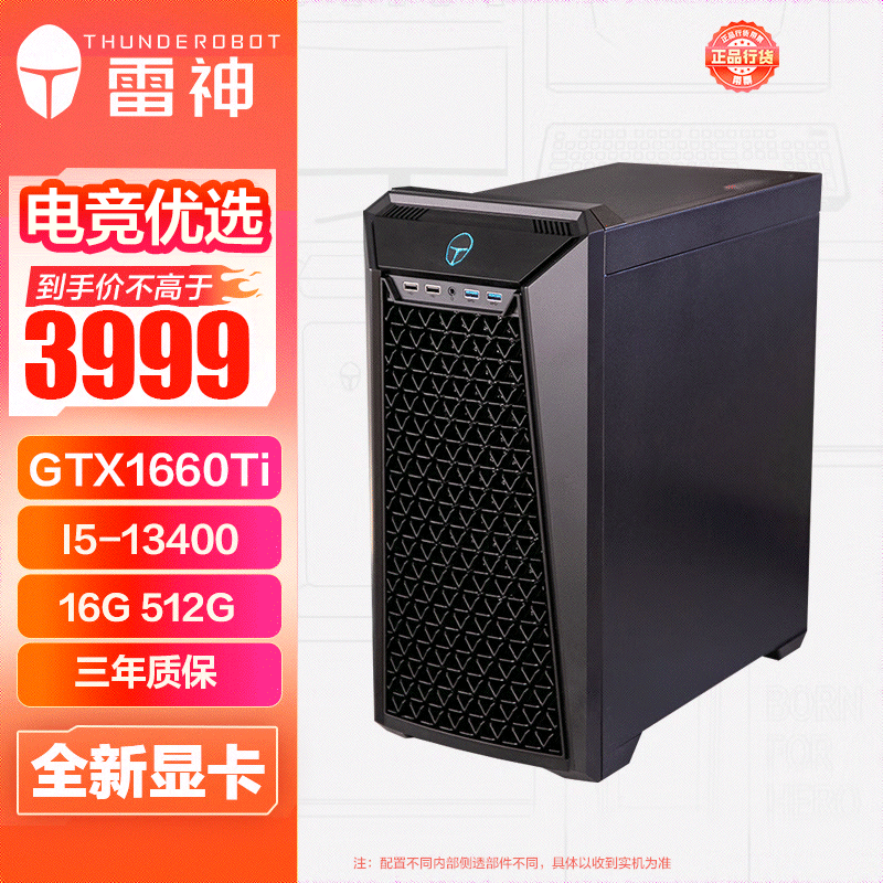 雷神(ThundeRobot)黑武士SE 游戏设计师台式电脑电竞主机(13代i5-13400 16G GTX1660Ti 512GSSD)价格:3969.00元!