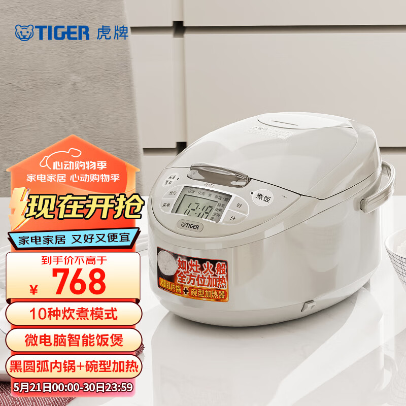 虎牌(Tiger)碗型加热智能微电脑 可预约电饭煲JAX-C10C 3L价格:868.00元!