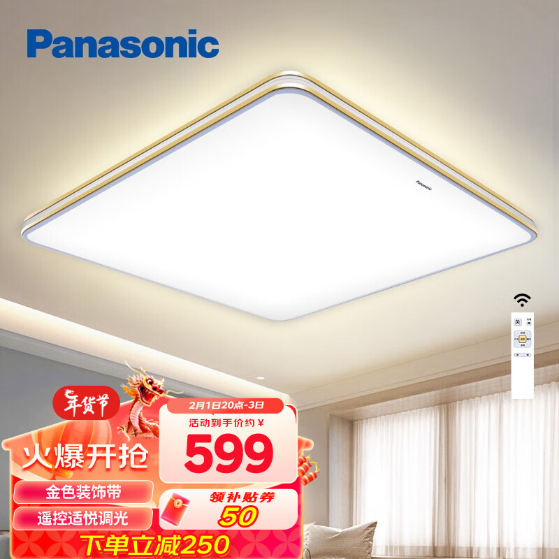松下(Panasonic)客厅灯卧室吸顶灯遥控简约金色饰带55瓦价格:849.00元!