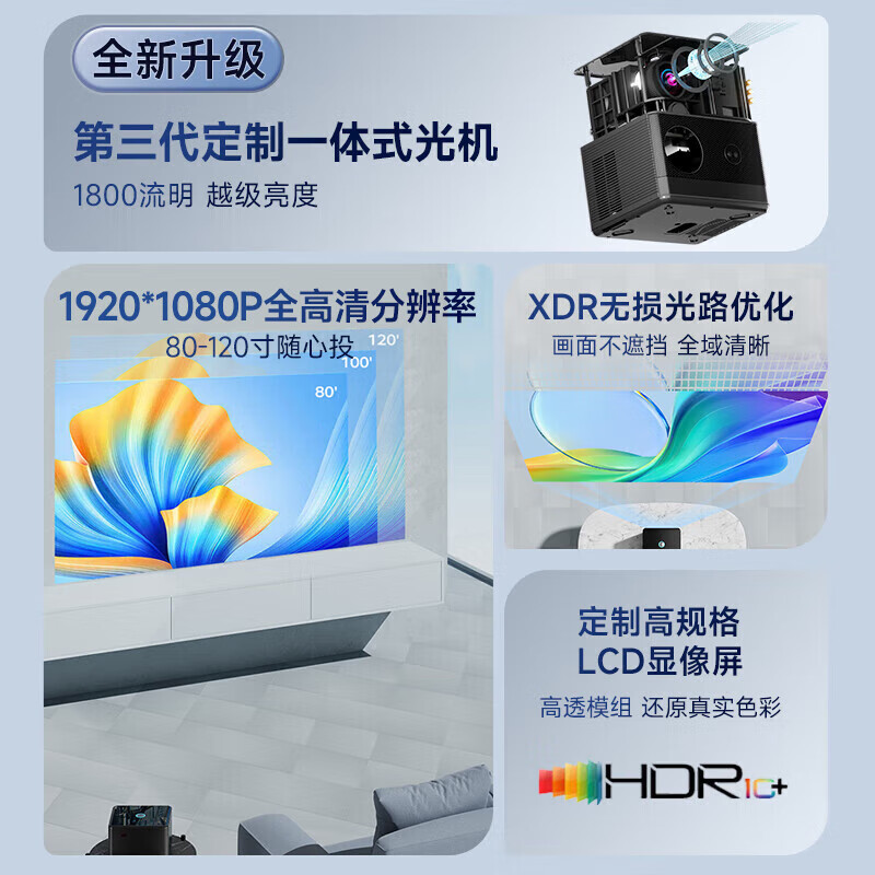 爱国者(aigo)H28 投影仪家用 1080P智能家庭影院(无感自动对焦 自动入幕 自动避障 航空级悬浮音箱)价格:879.00元!