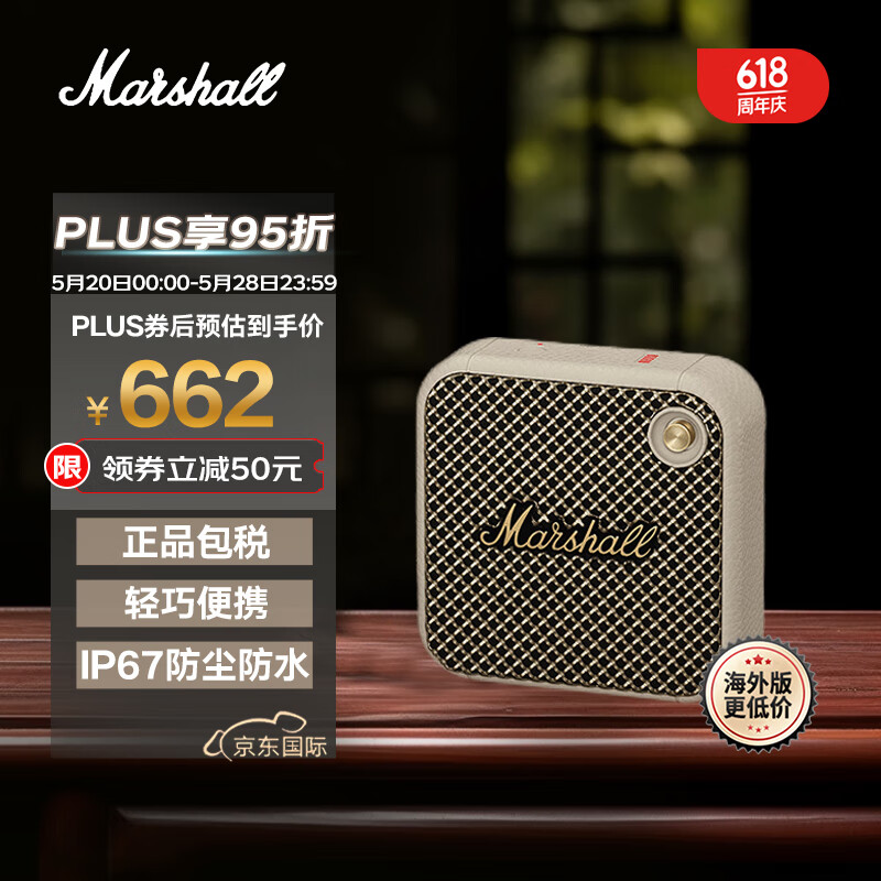 MARSHALL(马歇尔)WILLEN 音箱便携式蓝牙无线家用户外防尘防水小音响 油彩白价格:749.00元!