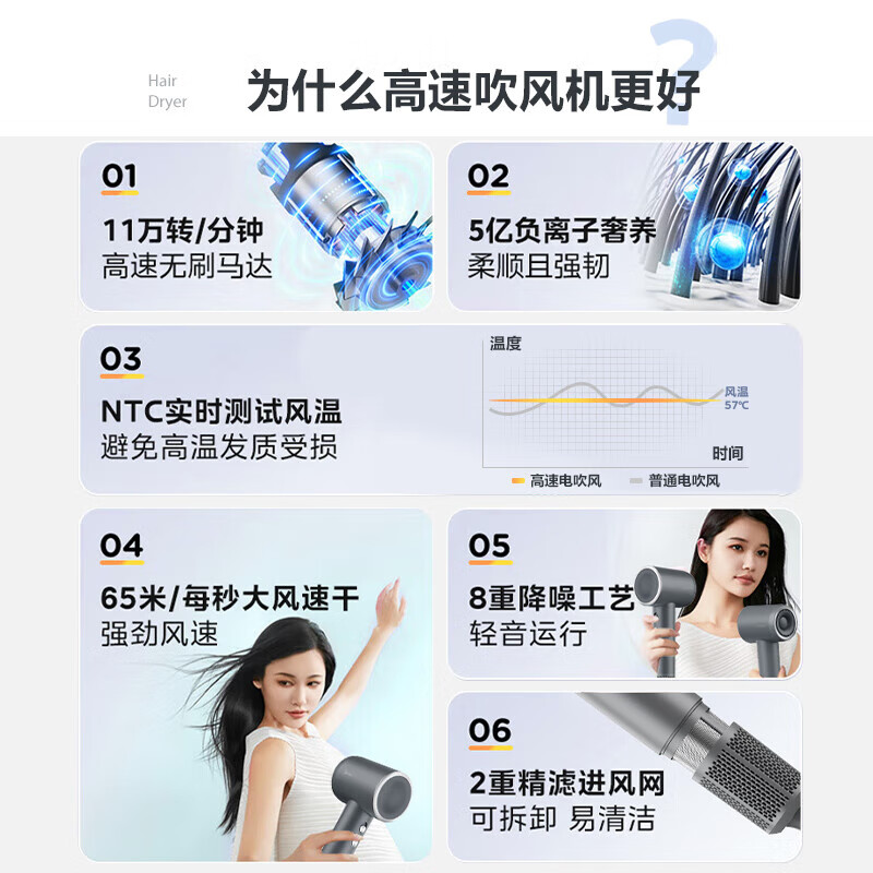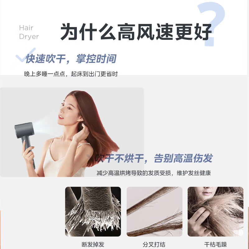 美的(Midea)高速吹风机家用高速电吹风亿负离子护发不伤发65米大风量恒温速干吹风筒节日生日送礼价格:269.00元!