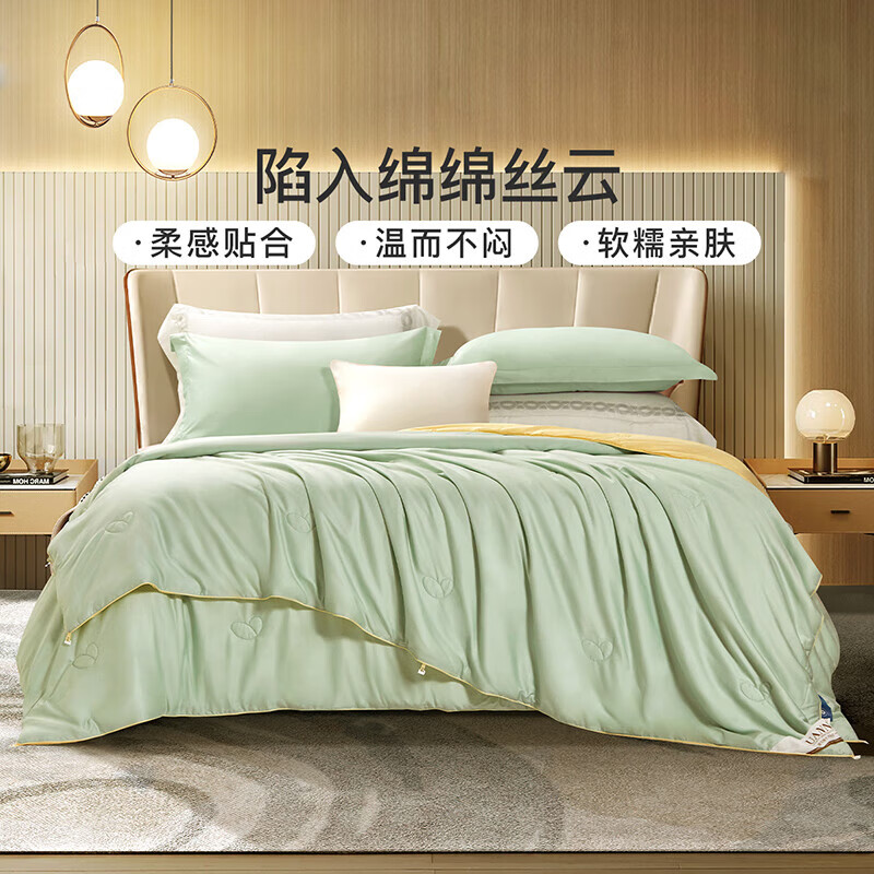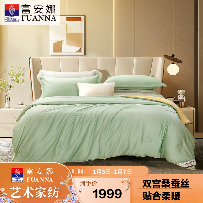 富安娜 沐晴雪 100%桑蚕丝双宫茧 冬被 7.5斤 203*229cm 绿+黄色价格:3399.00元!
