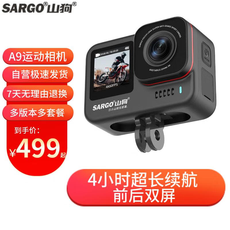 山狗 A9运动相机 4K高清防抖摩托车行车记录仪 头盔户外vlog钓鱼头戴小型摄像机价格:551.00元!