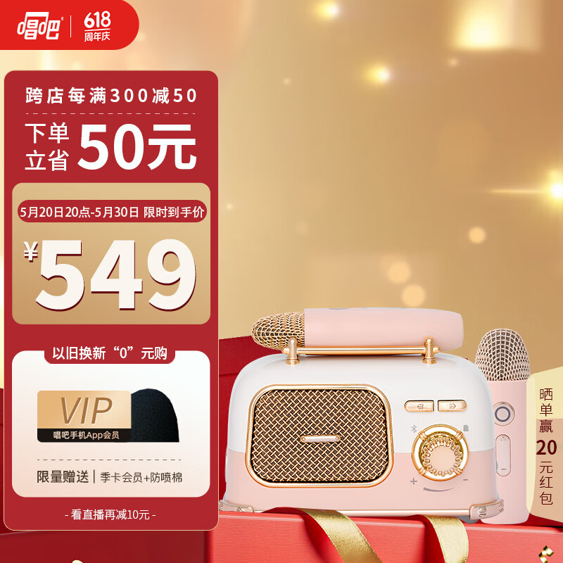 唱吧K歌音箱叮叮巴士L2蓝牙无线迷你麦克风音响户外k歌话筒音箱儿童家庭ktv音响礼物桃夭粉双麦套装版价格:599.00元!