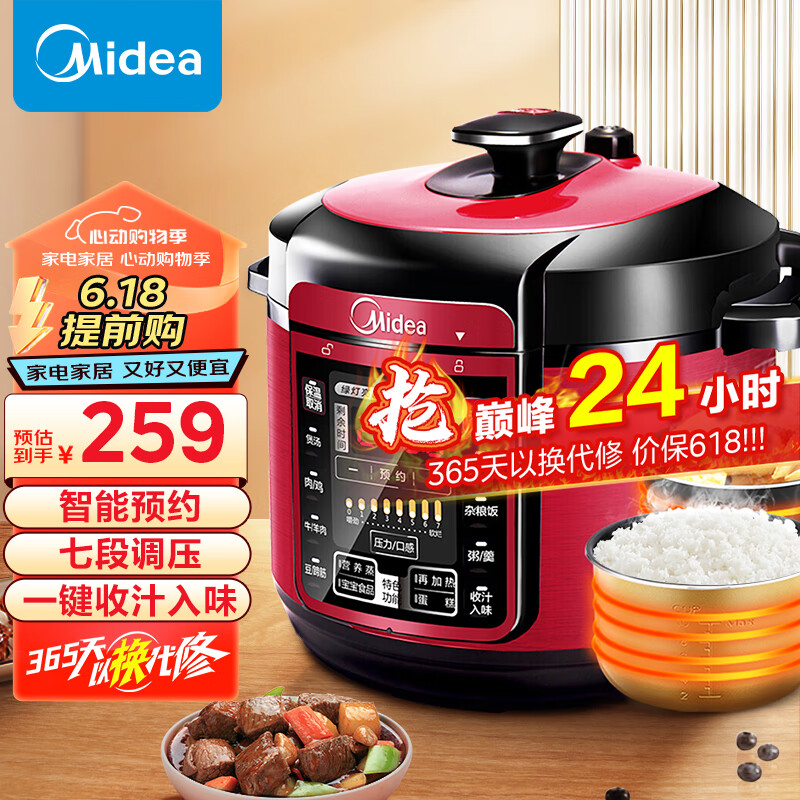 美的(Midea)智能电锅5L家用多功能 易清洁双胆 浓香收汁 七段调压 一键排气 高压锅WQC50A5(3-6人食用)价格:309.00元!