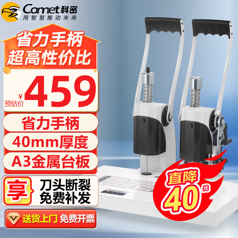 科密(comet) 400页会计凭证手动装订机A3金属大台板 40mm财务装订机铆管热熔文件档案手动打孔器 CM-40价格:499.00元!