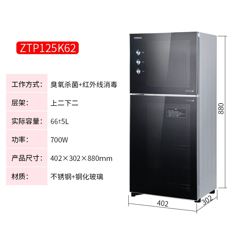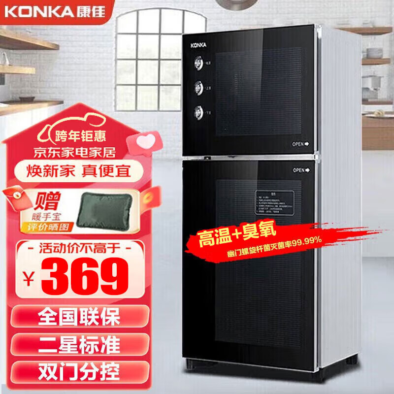 康佳(KONKA)消毒柜家用立式高温消毒柜商用厨房消毒碗柜大容量双门碗筷餐具茶杯高温消毒碗柜 二 65L 125型高温双室(上2层下2层)价格:369.00元!