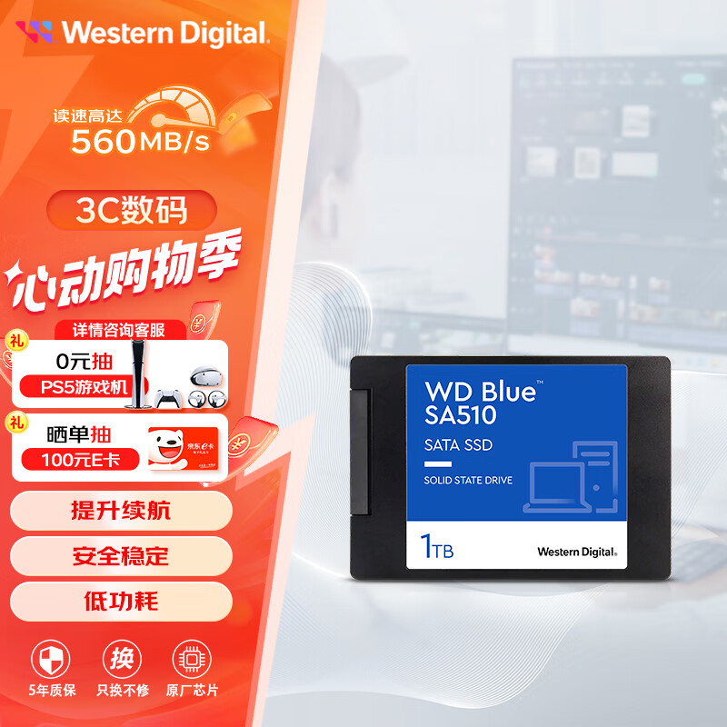 西部数据(WD)1TB 笔记本台式机电脑 SSD固态硬盘 SA510 SATA Blue系列 3D技术 高速读写价格:669.00元!