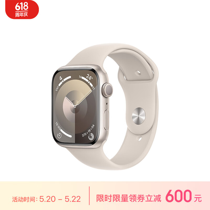 Apple/苹果 Watch Series 9 智能手表GPS款45毫米星光色铝金属表壳 星光色运动型表带M/L MR973CH/A价格:3199.00元!