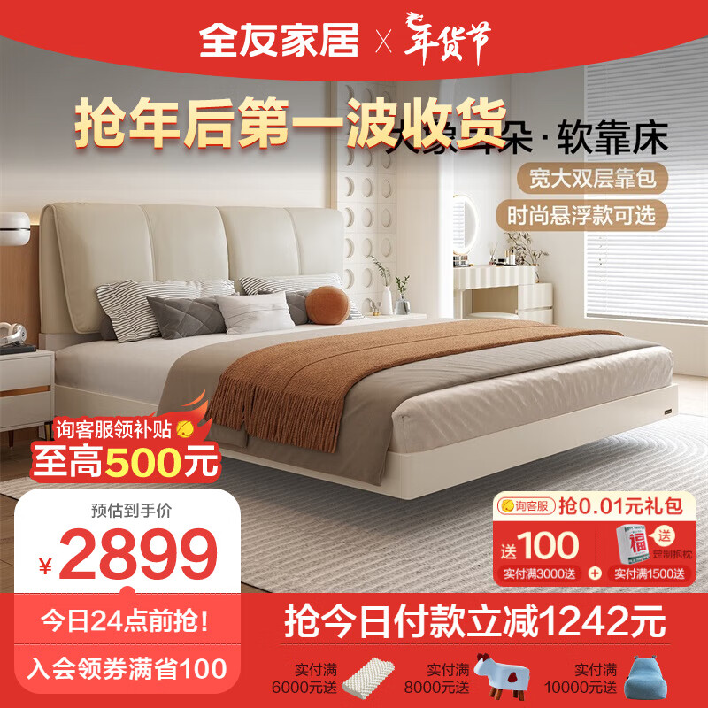 全友家居 床悬浮床双人床1.8米大象耳朵软床主卧大床婚床家具129303价格:4141.43元!