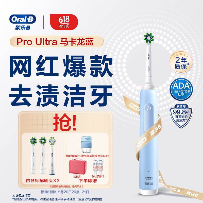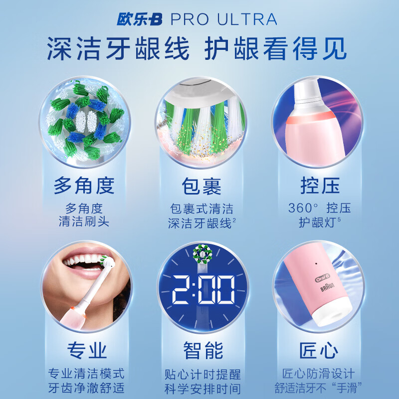 欧乐B成人电动牙刷成人Pro4Ultra小白刷3D声波圆头Pro系列深度清洁牙龈按摩情侣礼赠生日礼物价格:399.00元!