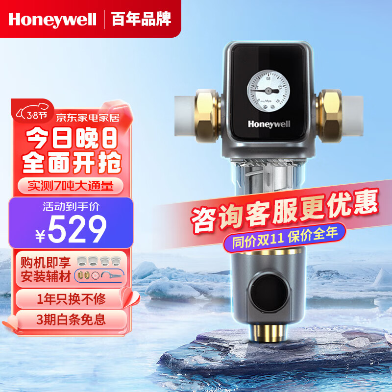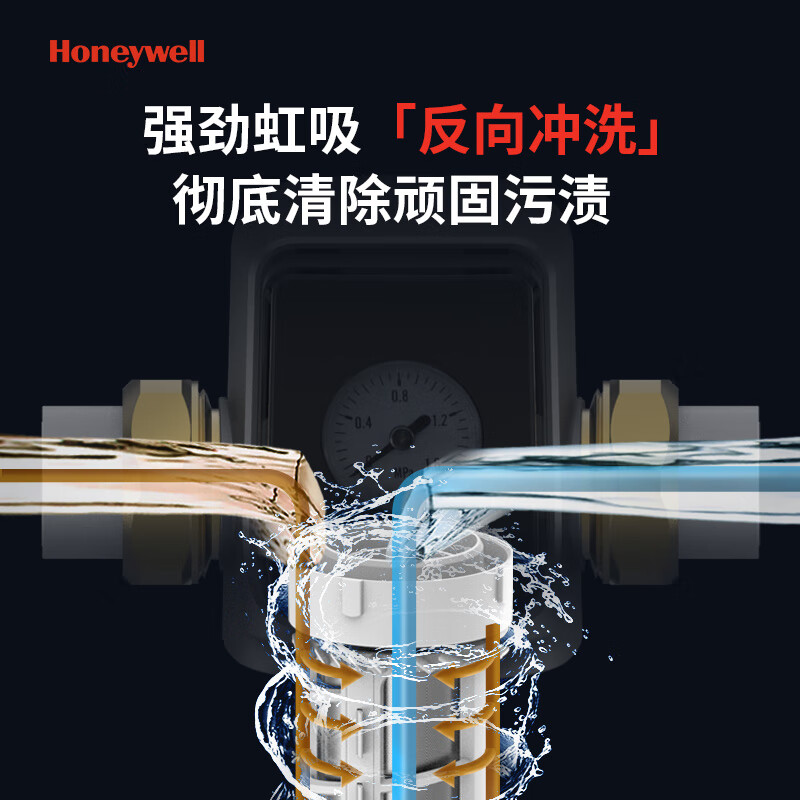 霍尼韦尔家用全屋中央前置过滤器40微米虹吸反向冲洗大通量家用管道自清洗过滤器表监控PFF61M12-EC价格:529.00元!