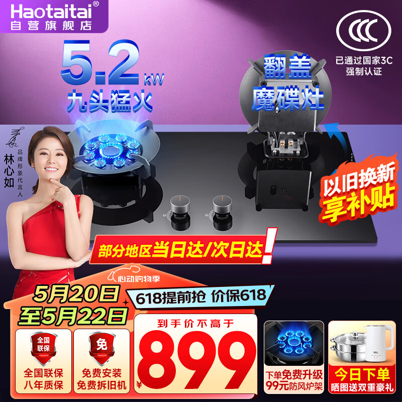 Haotaitai 家庭好用燃气灶具5.2KW魔碟灶九腔孔猛火太太燃气天然气灶台嵌入式可翻盖炉头燃气灶M2-Y 天然气价格:999.00元!