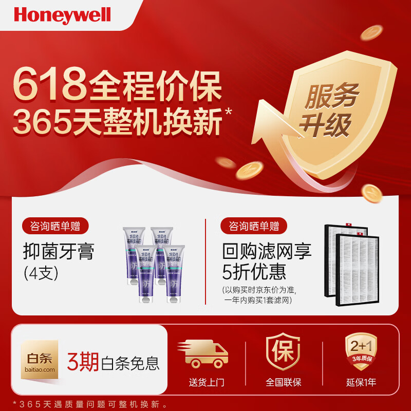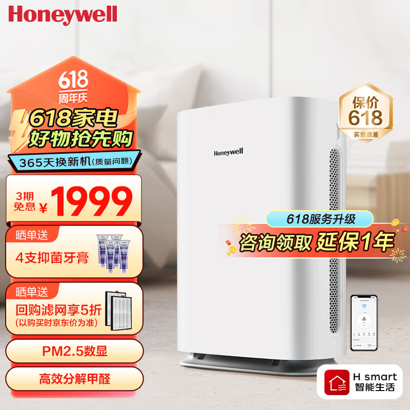 霍尼韦尔(Honeywell)空气净化器 除甲醛除菌除霾除过敏原 家用办公 KJ310F-P21W价格:1999.00元!
