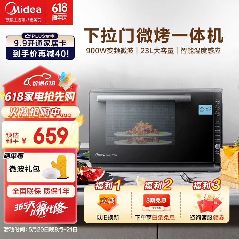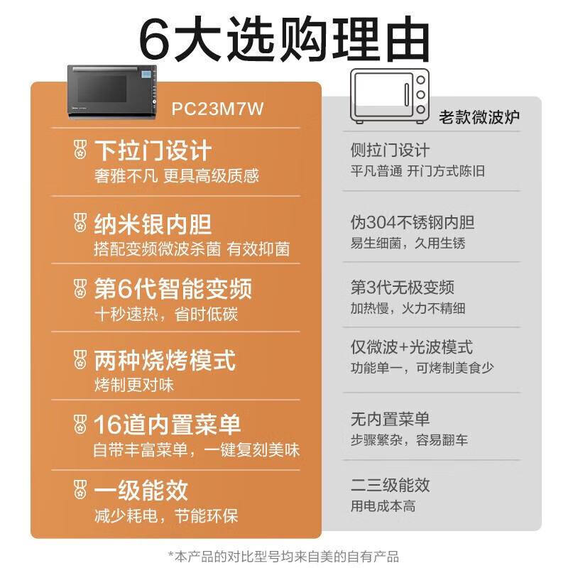 美的(Midea)微碳系列 900W智能变频 智能微波炉烤箱一体机 一级能效 湿度感应 双模烧烤(PC23M7W)价格:659.00元!