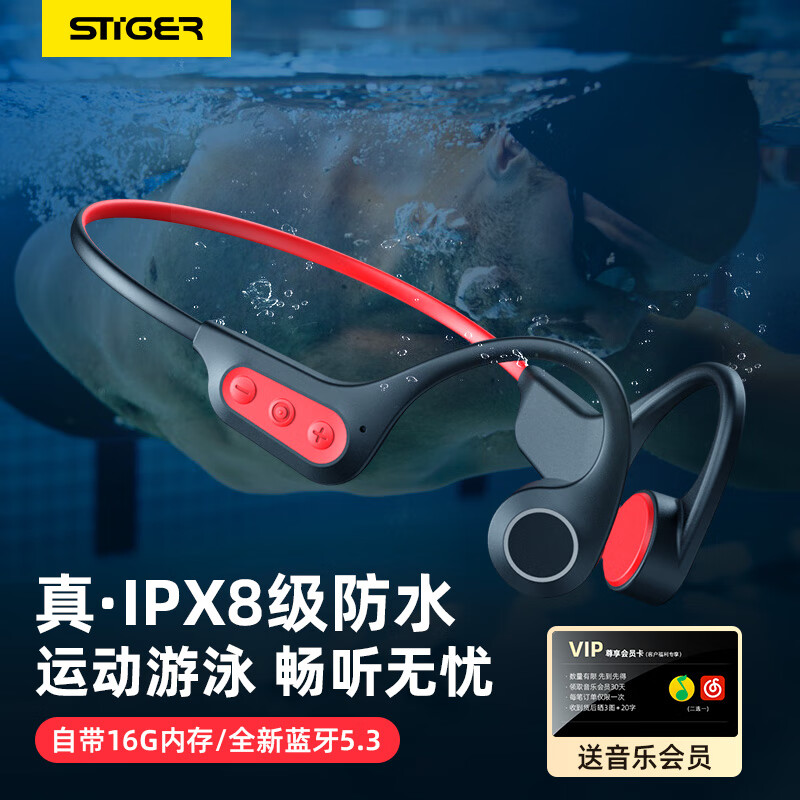 斯泰克(stiger)骨传导游泳耳机蓝牙耳机无线运动跑步专用挂耳式ipx8级防水自带内存水下不入耳MP3适用于华为小米价格:169.00元!