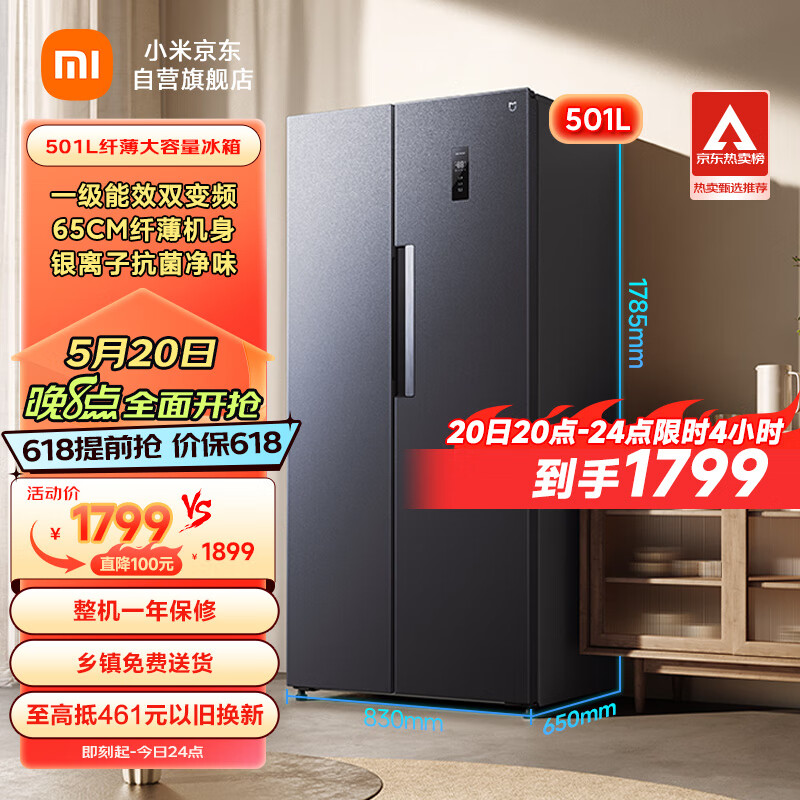 米家小米501L对开门大容量家用冰箱双开门 一级能效超薄嵌入银离子除菌 墨羽岩面板BCD-501WMSA价格:1799.00元!