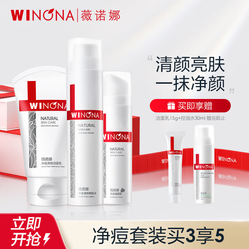 薇诺娜净痘清颜洗面奶+爽肤水+面霜水乳男士护肤品套装化妆品价格:257.00元!