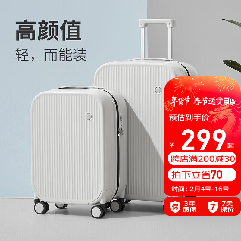 米熙行李箱女拉杆箱旅行箱子密码箱潮流设计登机箱拉杆箱20英寸烟白73价格:369.00元!