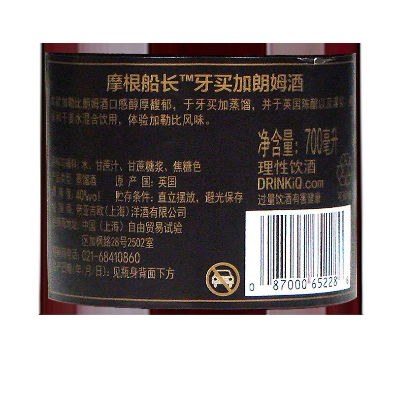 摩根船长(Captain Morgan)洋酒 摩根黑朗姆酒700ml价格:78.00元!