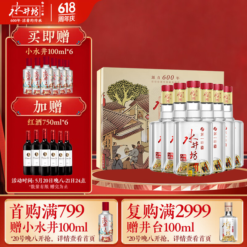 水井坊 臻酿八号 52度 500ml*2*3 礼盒整箱装 浓香型白酒 婚宴喜酒价格:2334.00元!