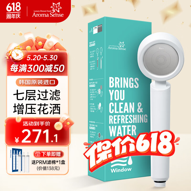 Aroma Sense淋浴花洒喷头增压韩国进口活性碳过滤除氯净水加压手持莲蓬头 PR9200花洒瓷白色标配价格:338.00元!