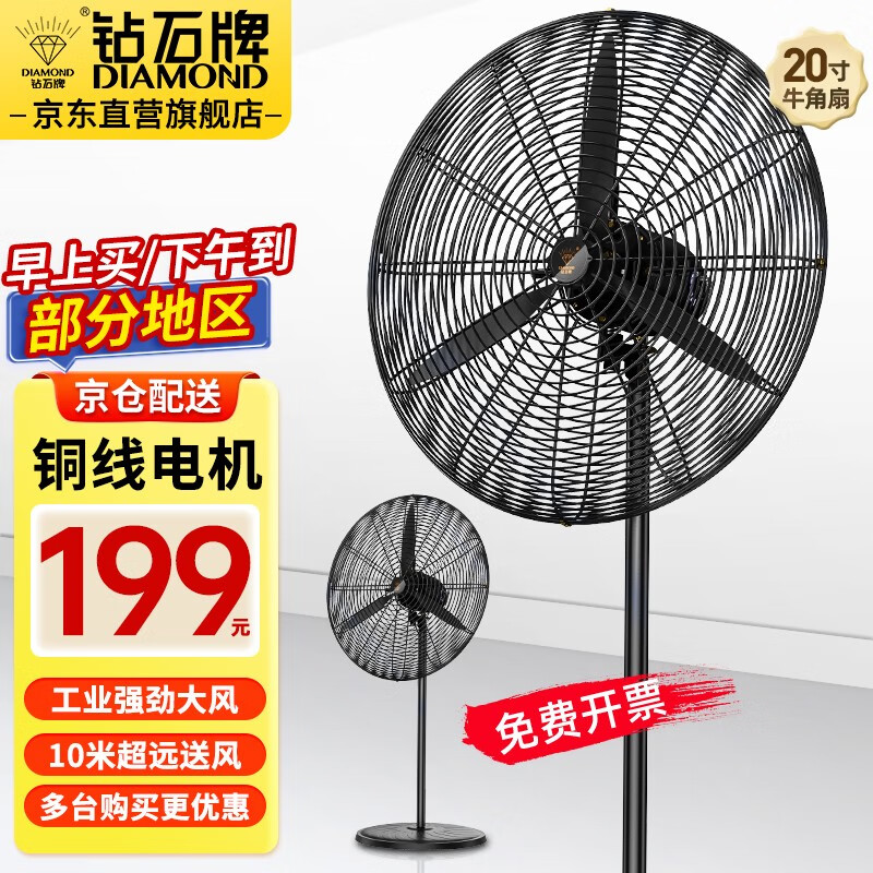 钻石牌(DIAMOND)工业风扇大风力电风扇牛角扇大功率风扇工厂车间商用立式落地大风扇工业壁扇吹除甲醛 FS-50 工业落地扇(铜线电机)价格:219.00元!