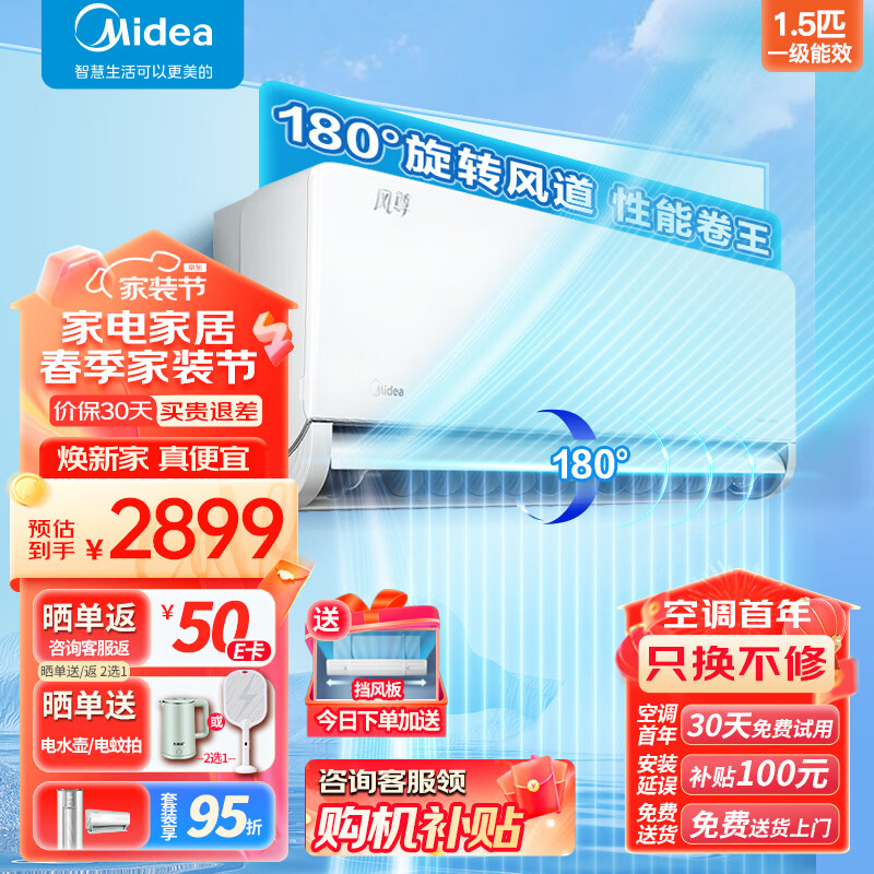美的(Midea)空调挂机风尊时尚版1.5匹新一级能效变频冷壁挂式空调挂机低噪智能除菌大风量 KFR-35GW/N8MXC1价格:2899.00元!