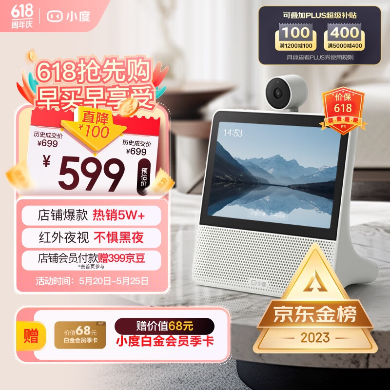 小度智能屏X9 云台360度摄像 红外夜视 视频监控 蓝牙音箱音响 K歌看剧 小孩老人学习看护陪伴 礼物价格:599.00元!