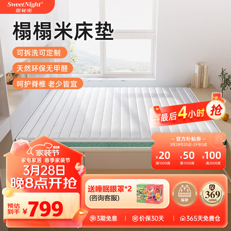 Sweetnight榻榻米床垫天然椰棕床垫6cm床垫子 可定制 甜秘密丹左B款1.35x2米价格:799.00元!