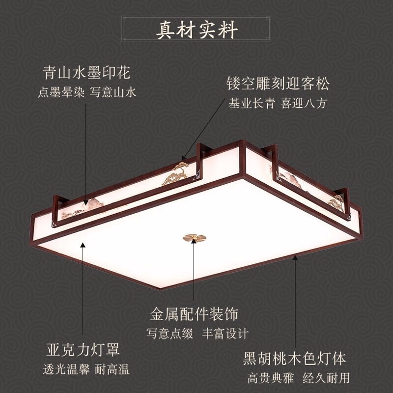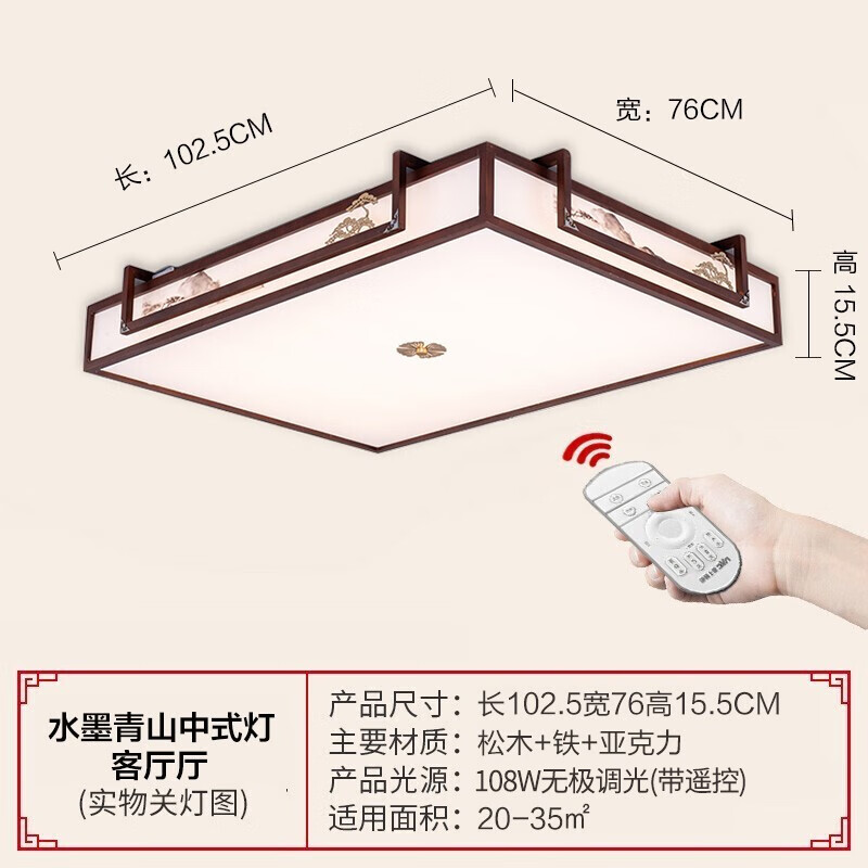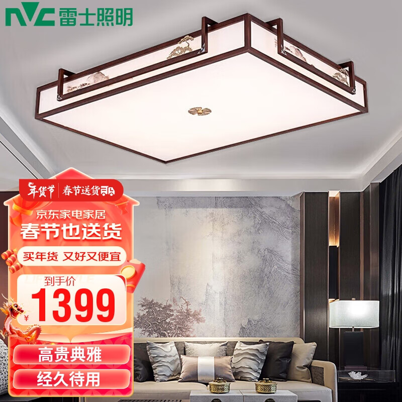 雷士照明(NVC)新中式吸顶灯 LED古典木艺国风艺术长方形灯具无极调光108W价格:1399.00元!