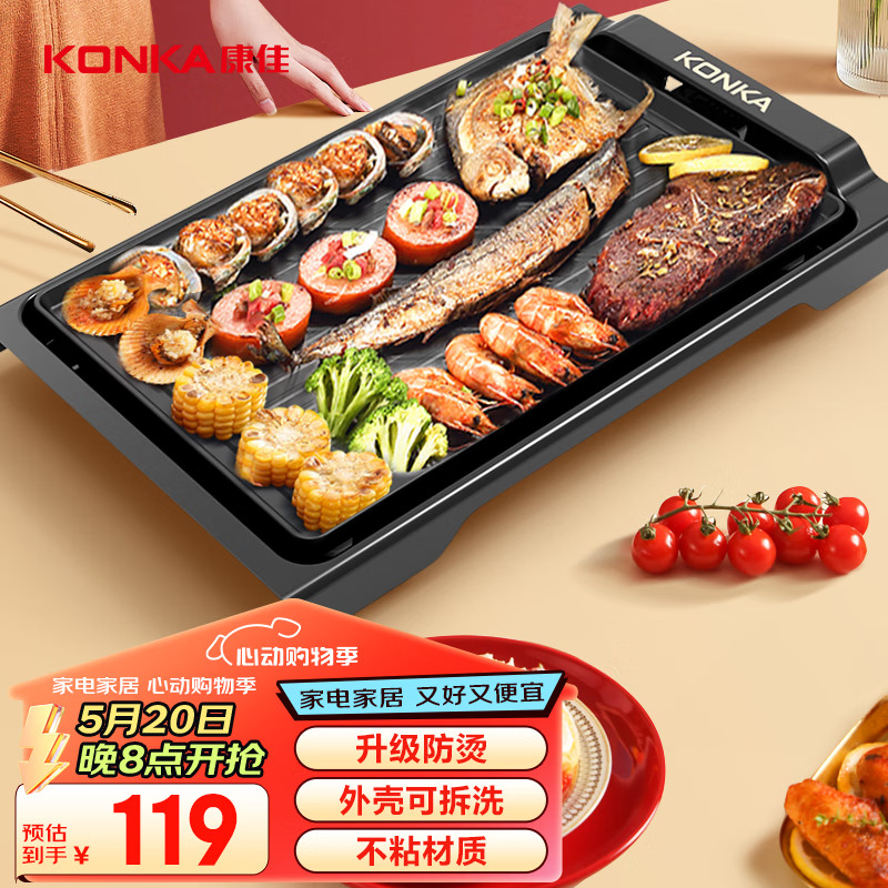 康佳(KONKA)家用无烟电烧烤炉 不粘电烤炉电烤盘烤肉炉烤肉锅韩式电烤炉铁板烧烤盘烤肉机 KEG-W180A价格:119.00元!