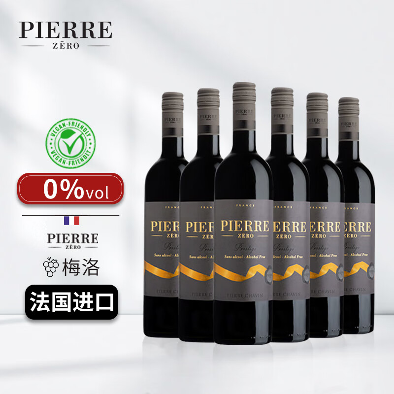 图比克法国PIERRE ZERO梅洛珍藏无醇葡萄酒无酒精脱醇0度红酒 750ml*6瓶价格:889.00元!