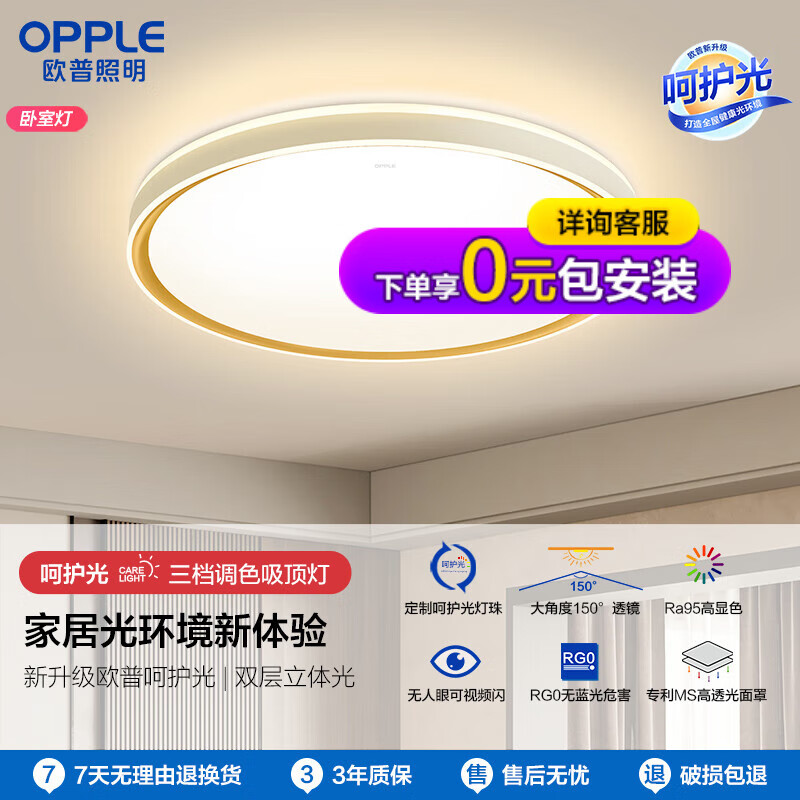 欧普照明(OPPLE) 吸顶灯客厅卧室灯具可调光LED照明灯饰品见 呵护光价格:376.00元!