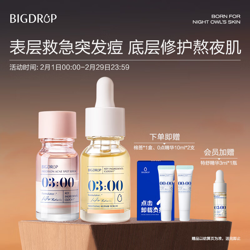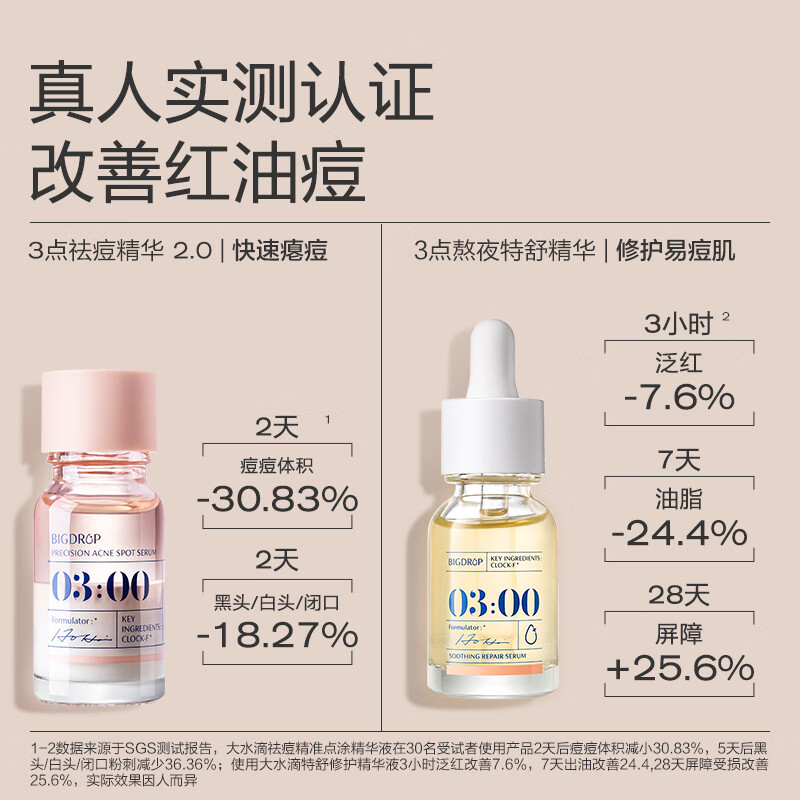 大水滴2.0祛痘痘肌改善组合水杨酸祛痘净痘瘪痘修护舒缓泛红熬夜精华价格:229.90元!