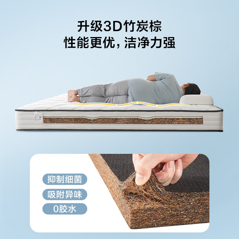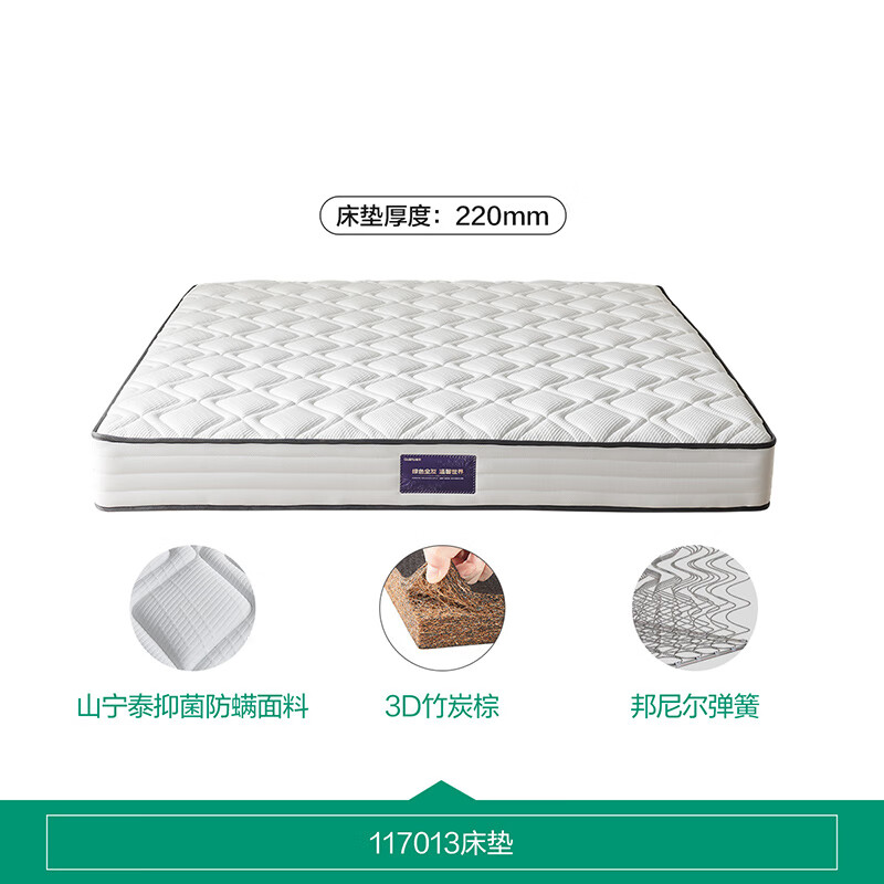 全友家居 竹炭棕弹簧床垫卧室家具抗菌防螨净眠引力垫护脊床垫117013价格:1570.00元!