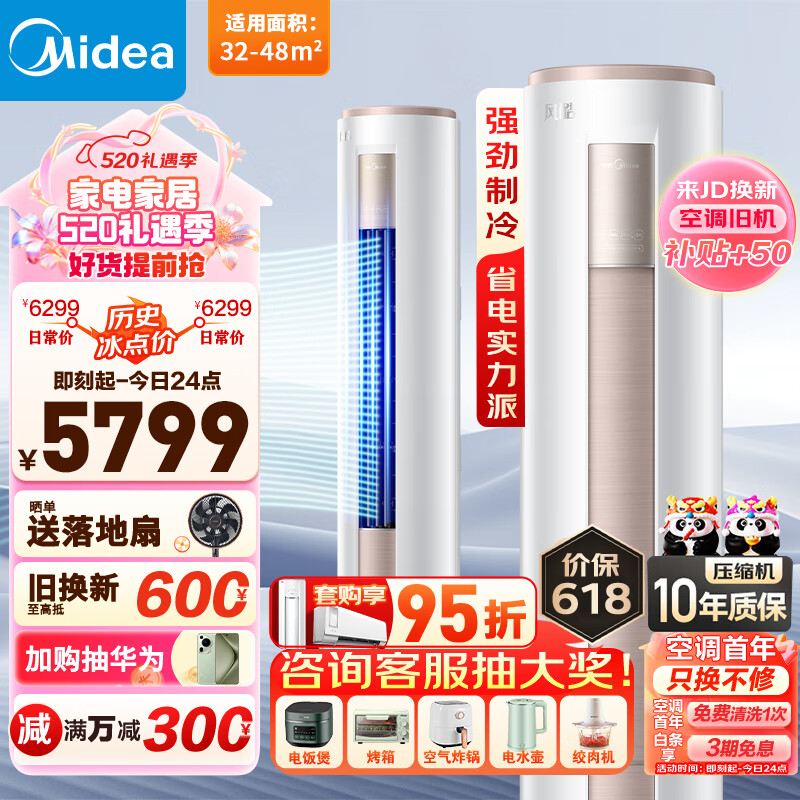 美的(Midea)空调柜机 新一级能效全直流变频冷暖两用 省电客厅圆柱立式落地式客厅静音 3匹风酷【智行相似款】价格:5699.00元!