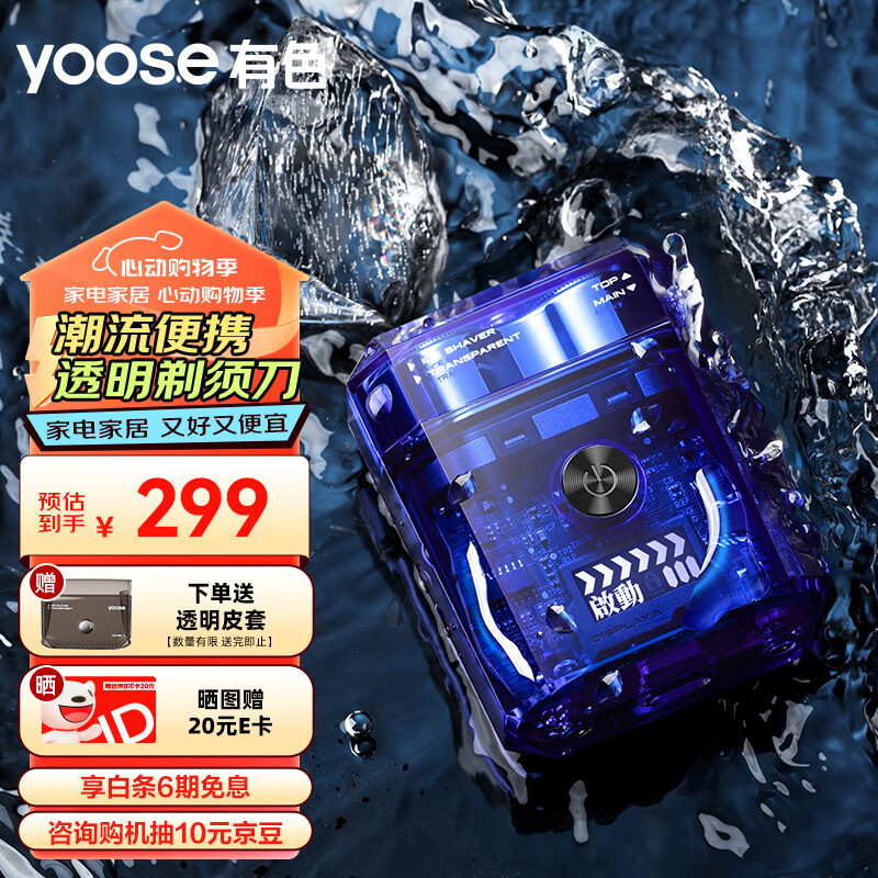 有色(yoose)电动剃须刀 迷你便携 男士刮胡刀 透明机身 生日情人节礼物送男友 胡须刀礼盒 ICE 透明蓝价格:399.00元!