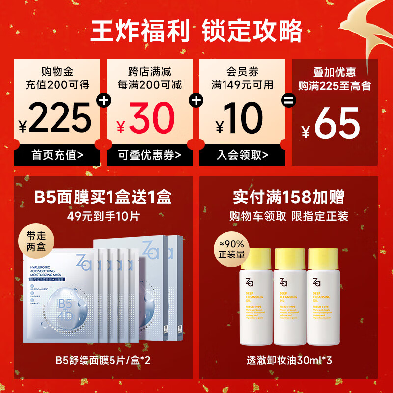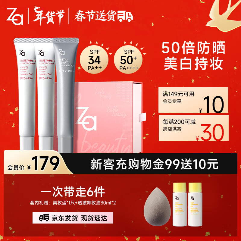 姬芮(ZA)美白防晒套装礼盒防晒隔离遮瑕三合一SPF50+PA++++价格:189.00元!