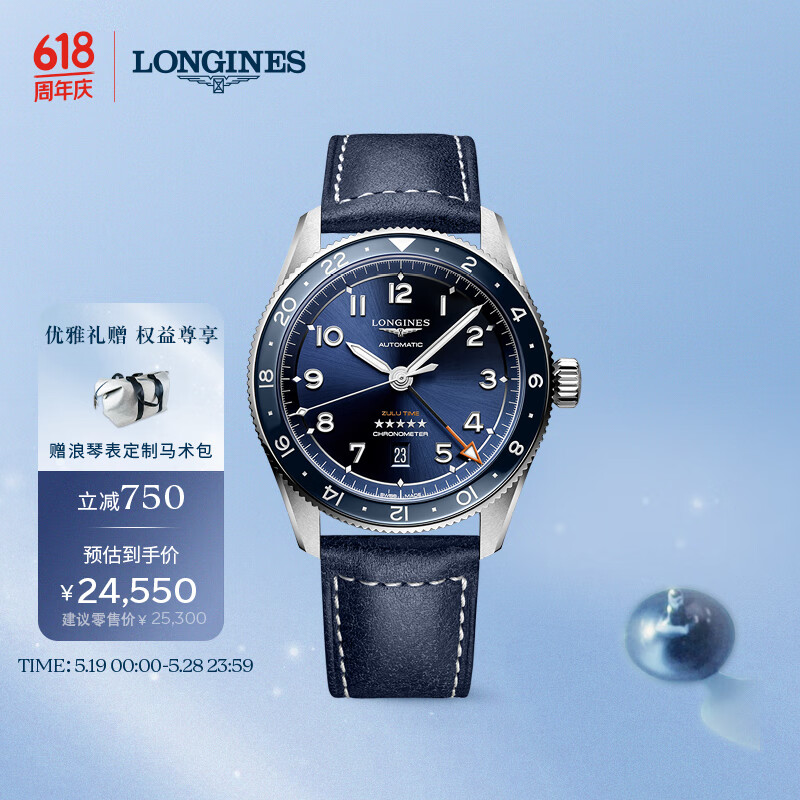 浪琴(LONGINES)瑞士手表 先行者系列祖鲁时间 机械皮带男表L38124932价格:24550.00元!