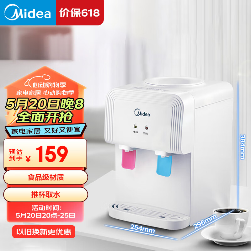美的 Midea 饮水机家用台式机桌面迷你小型饮水器家用宿舍办公室用推杯取水抽水器饮水机 YR1220T价格:159.00元!