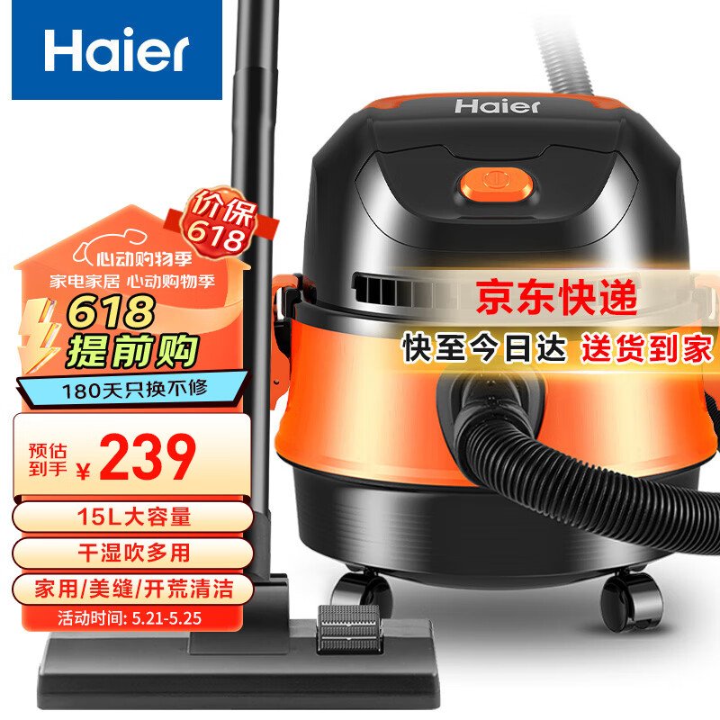 海尔(Haier)吸尘器家用美缝干湿吹多用大容量大吸力大功率桶式吸尘器HZ-T615价格:239.00元!