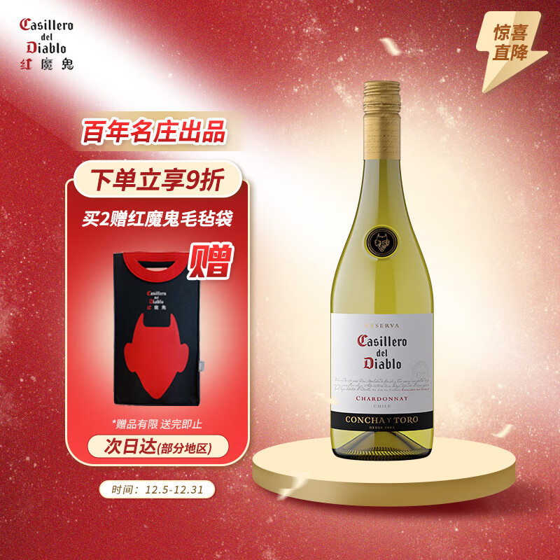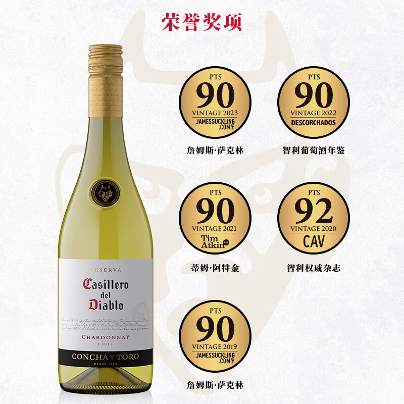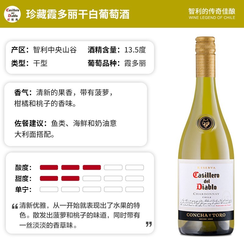 红魔鬼(Casillero del Diablo)霞多丽干白葡萄酒 750ml单瓶装 智利进口价格:69.00元!
