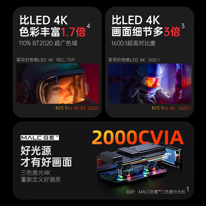 坚果(JMGO)N1S Pro 4K纯三色激光云台投影 投影仪家用办公 智能家庭影院 游戏电竞 4K超高清 2000CVIA【TOP】价格:6299.00元!