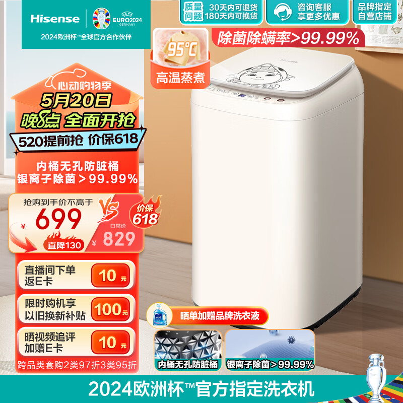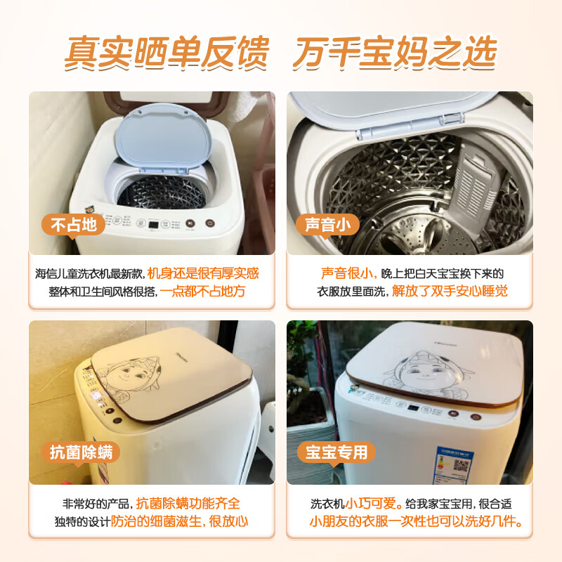 海信(Hisense)小哈利波轮洗衣机全自动 3公斤迷你洗衣机小 儿童婴儿洗衣机 无孔内桶高温煮洗HB30DF645M以旧换新价格:699.00元!