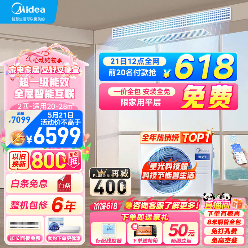 美的(Midea)中央空调风管机一拖一2匹一级能效 星光科技版 全屋智联 一价全包KFR-51T2W/B3DN1-XG(1)Ⅲ价格:6599.00元!